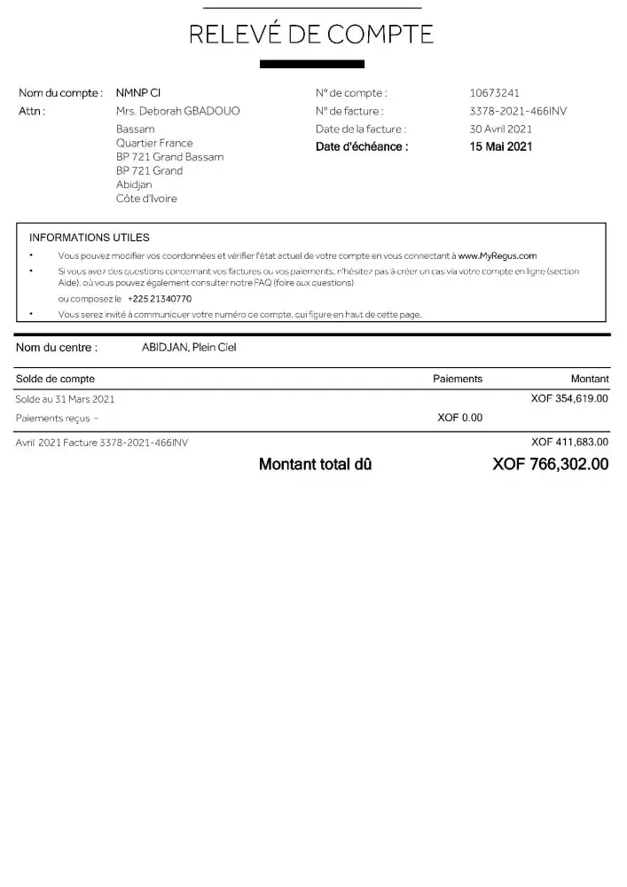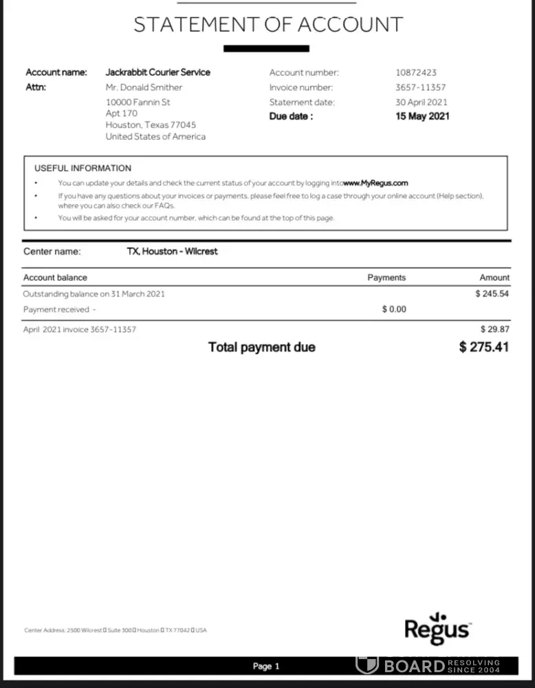 In April 2021 we received a different invoice than before -Ann.1- exp. 15/4/21 -(bigger amount) without any contact from Regus people.