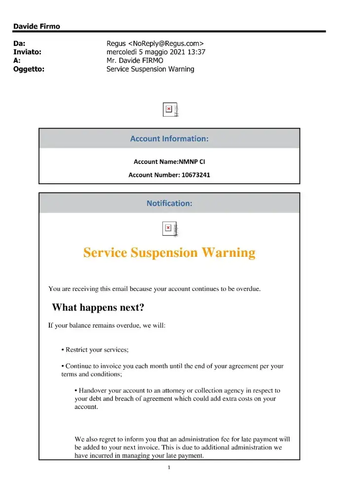 To confirm our willingness we paid today the invoice expired on 15/4/21 but it is really difficult to us to believe that this behavior come from Regus that we were planning to use with our different companies in Switzerland, Italy, Dubai and others.