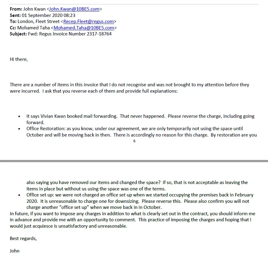 If you have encountered the following issues with Regus, please contact me (John Kwan). I am an antitrust lawyer and have a public profile (John. [protected]@10be5.com):