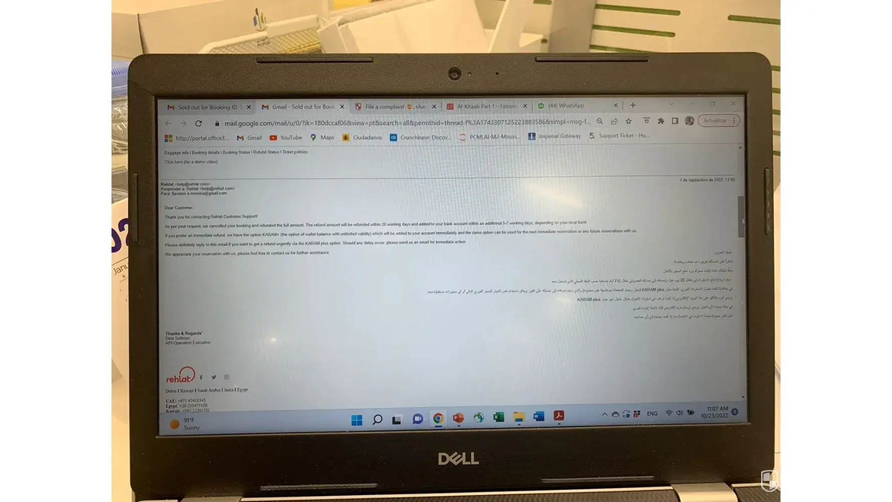 On July i have booked ticket through Rehlat for my family from Kuwait to Jakarta, after few days Rehlat send me email that due to technical error they are not able to confirm the ticket and they will refund full amount KWD 649.759 within 20 working days, until now they didn’t refund my money and i have called them so many times and they answer that they will send email to finance team and they will contact me within 48 hours, but nobody call or send me email about that, even they didn’t reply my email.