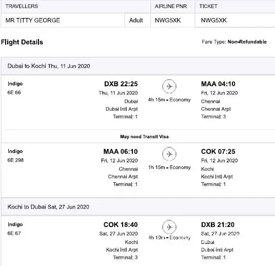 Rehlat air ticket booking - Ref. NWG5XK