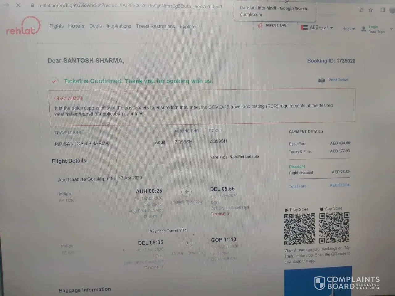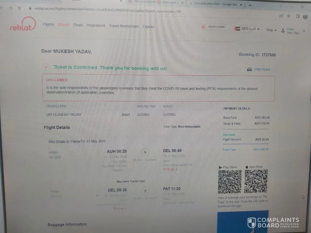 My booking id 1909335, when I was booking the flight ticket the total amount was showing 8283 AED only. However, I came to know through my credit card statement is that, 8625 AED deducted. In this regard, I have sent many email to Rehlat. Till now I dint get any response from Rehlat. In the meantime, I had a call with banker, they said few % of transaction charges are deducted due to the foreign money transfer which is really surprising to me. I have attached their response in my email as well. I need a proper response. It is a hard earned money which I dont like to loose this way. Please respond to me as soon as possible.
