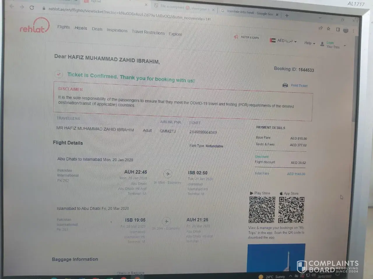 I booked a ticket from Calicut-Abudhabi on 4 january 2022, booking id is 1876297. Payment done but ticket was not issued by Rehlat. I requested to refund my amount (937.26 dirhams). I called them 39 times regarding this. Till now i didn't received my refund.