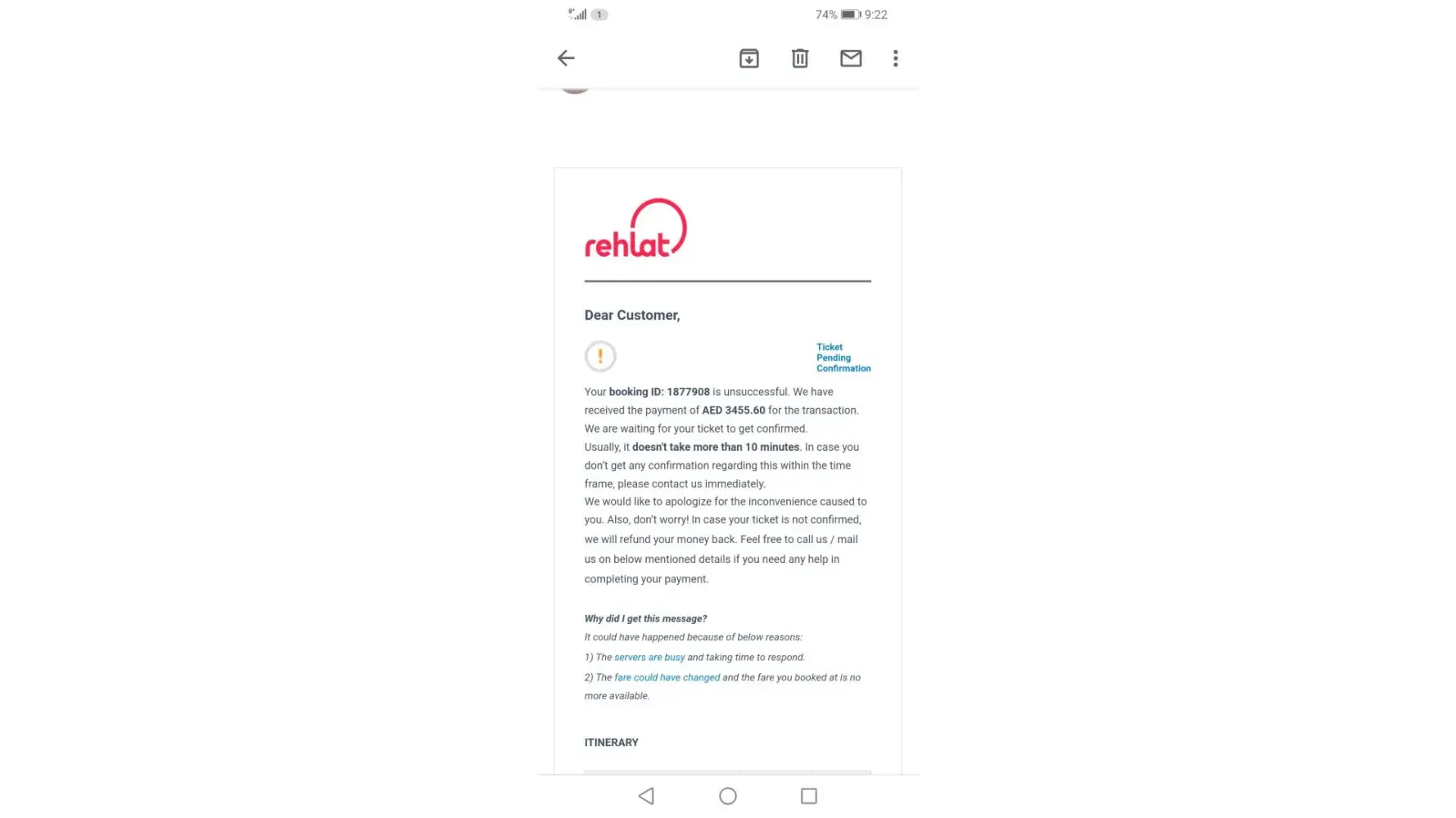 However, rehlat sent us an email stating that we will have to pay rehlat charges of AED 200 for each booking and will not get the full refund. I don't understand why I should pay rehlat for this decision because it was not from our end that we decided to cancel a flight but the airline themselves! Since my husband and I had booked the same outbound flight and different inbound flights due to our difference in leave plans. We now have to pay AED 200 each for the booking and that is AED 400 in total gone to waste, ALL FOR WHAT? Because the airline themselves cancelled the flights? This is absolute fraud! Never booking via rehlat again. Also, we have not received the refund yet for the both the booking. Appalling service. We have had much better service from other online airline booking websites and this is the first and last time we will consider rehlat, an ultimate disastrous brand!