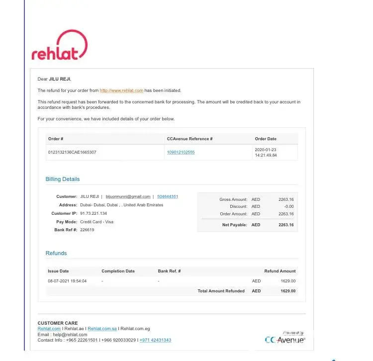 Rehlat claimed to have refunded the money in their first response to this review but it has been over a week. I contacted my bank and they said there is nothing from Rehlat. This company is a scam! I will be spreading the word on other review sites and contacting chamber of commerce in every country Rehlat operates. I found the email of Rehlat's CTO, Tariq Riza, and contacted him but still no response. Rehlat has offices in Kuwait, Saudi Arabia, Egypt, UAE, and Bahrain. You can find the chamber of commerce emails online for those countries to report them like I have.