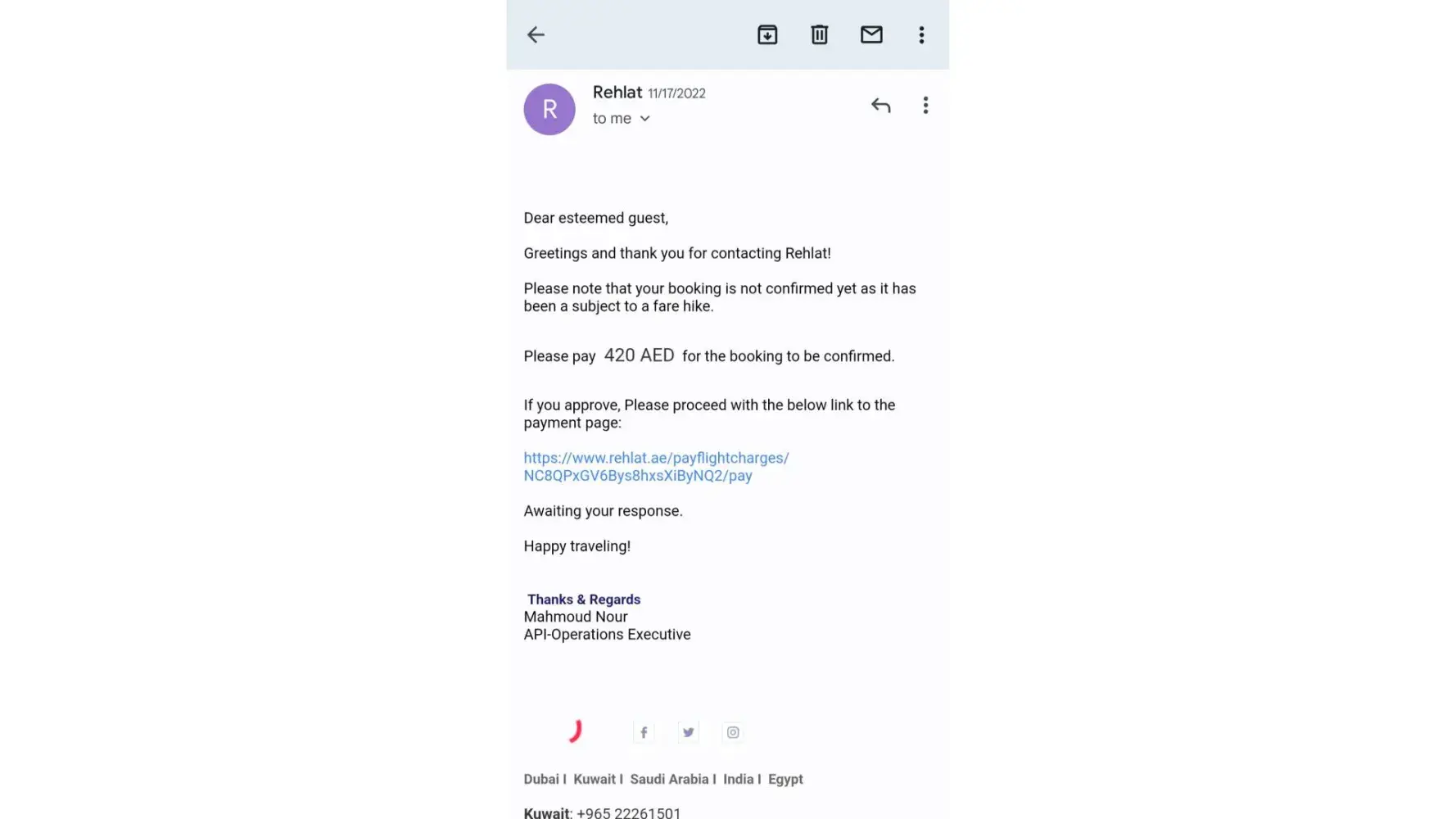 When I called the airline to check, they told me to contact Rehlat as without ticket issued I can't travel and it will be useless to go to the airport.