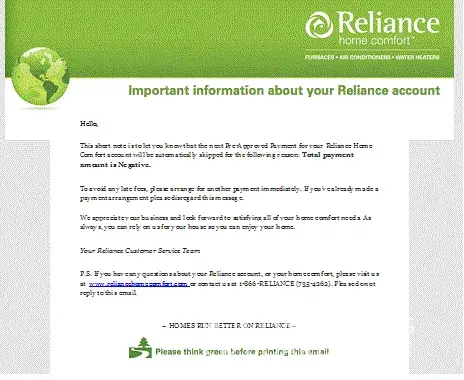 My elderly dad got roped into a furnace. It wasn't reliance directly it was a now bankrupt company called Eco Home or something.