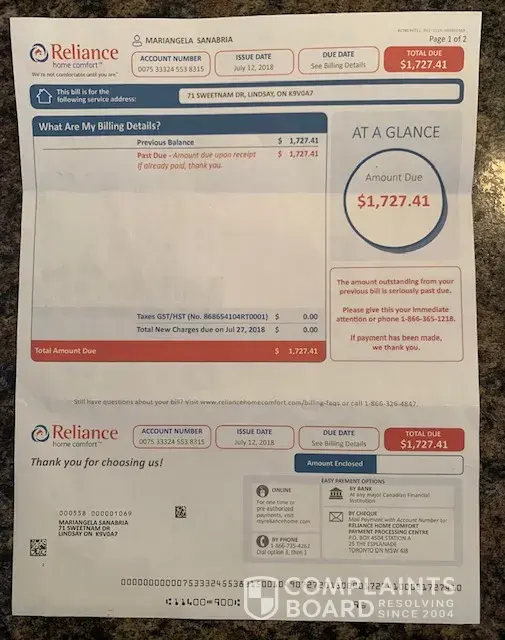 - It is now at least one year later and this is still going on and reliance continues to charge my credit card! Unit still is not replaced