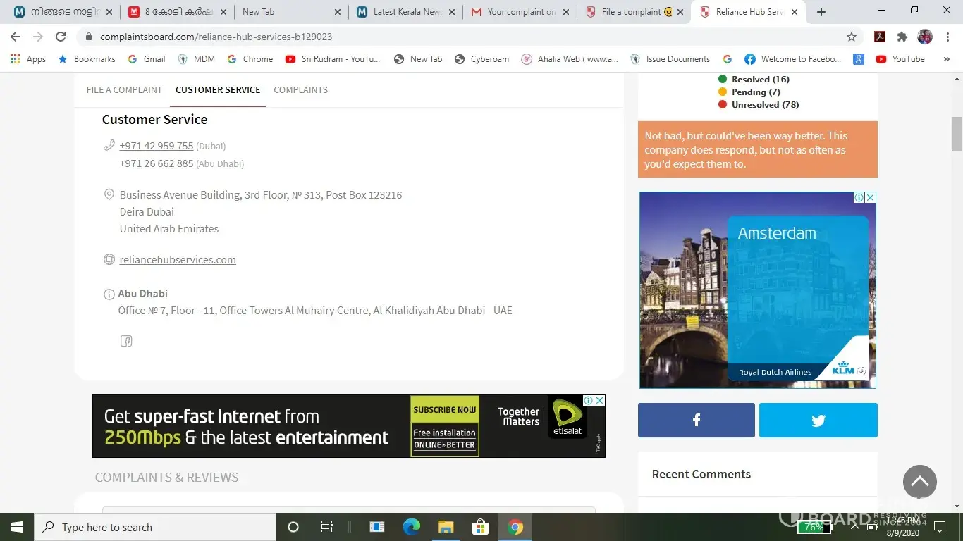 I have paid 18k AED to Reliance Hub Service on Jan 2019, but now that I know that this a complete fake group. I want people not to be fooled by these cruel human mongers.