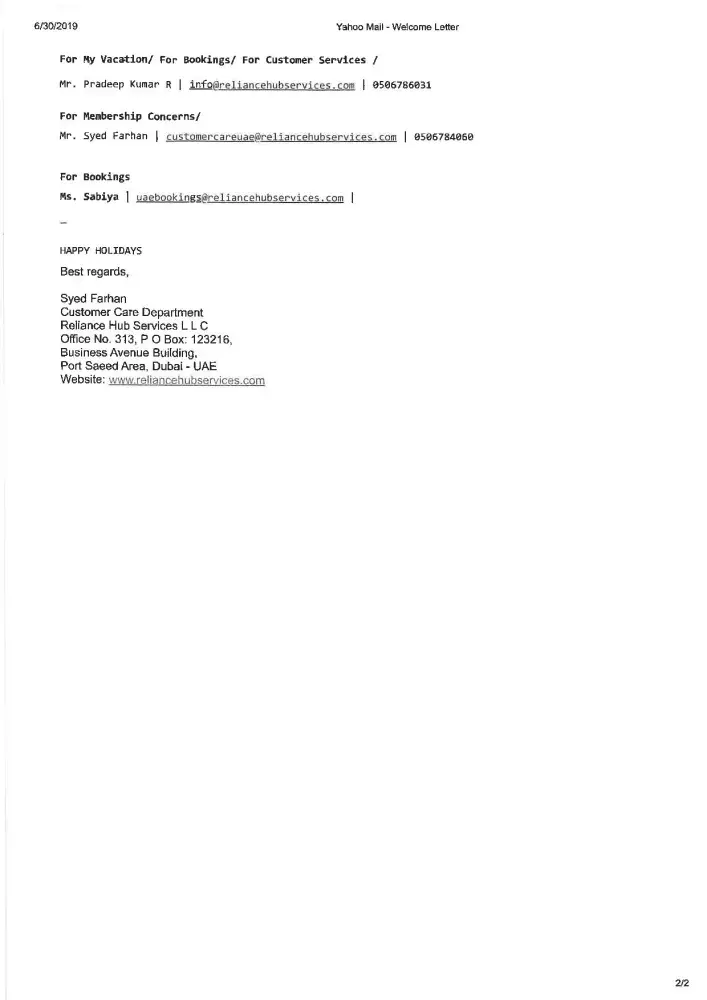 2 months ago, I had called Syeds number many time and a person named Shrikant answered and replied to me [protected]@reliancehubservices.com had answered and informed that Pradeep, Syed and Akhter is not sure if they will return and the office has relocated to Deira as their rental contract is over.