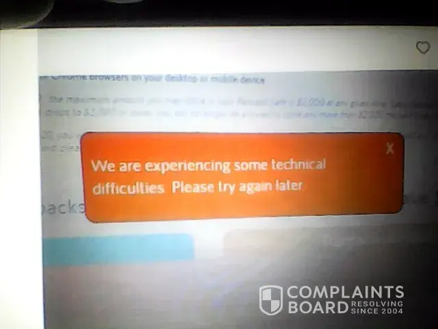 When i tried to tell your people that the safe is not working they dont want to listen i get a message saying we are experiencing some technical difficulties please try again later this does not mean that im having a problem with my laptop there is a problem with your system this has been going on since 9-3-22 and for the past four weeks same message pop up you sent me an email on 10-7-22 at 3:24 pm saying i can get on to my safe so i can put money on my card so when i tried. i get the same message again so why send me an email if you have not fix the problem also because of your system that i was not able to put money on my card i lost my life insurance because of you