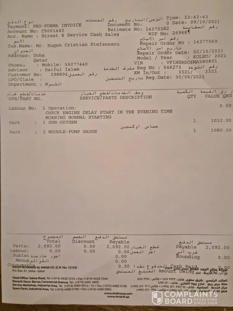 These guys are representing Renault Brand in Qatar and should have some customer satisfaction reports from time to time to see their real standard.