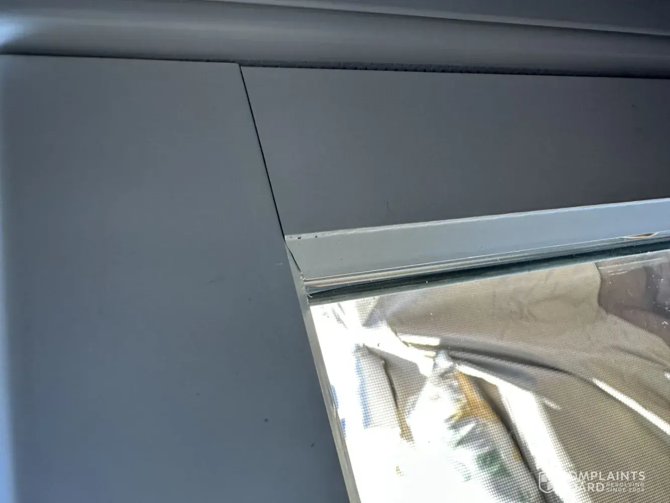 Window project started 11/22/2023. Completion is pending due to the following items: 1.) The screen door was incorrect. 2.) Interior caulking is poor, sticky and it is smeared on drywall/paint and molding. 3.) Large gap/hole at 'Rosette(s). 3.) Floor molding damaged (good sized gouge). 4.) Exterior: Large gap between metal threshold and stucco weep screed. (Water damage will result if not repaired).