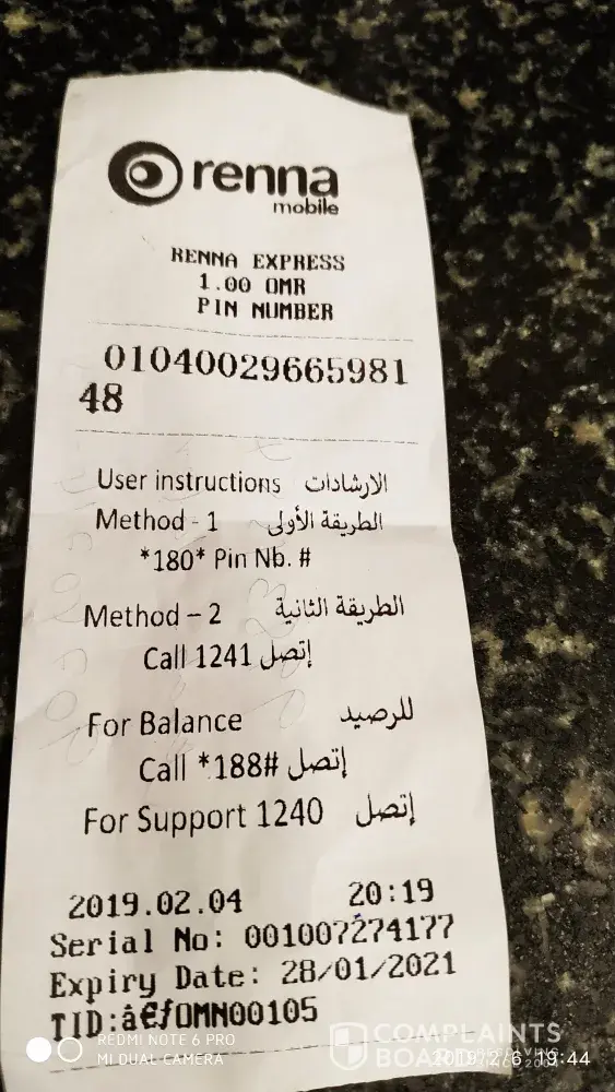 I had purchased recharge card worth OMR 1 on 4th Feb 2019, the card did not work and instead the messages appeared was coupon used already or recharge code not valid.