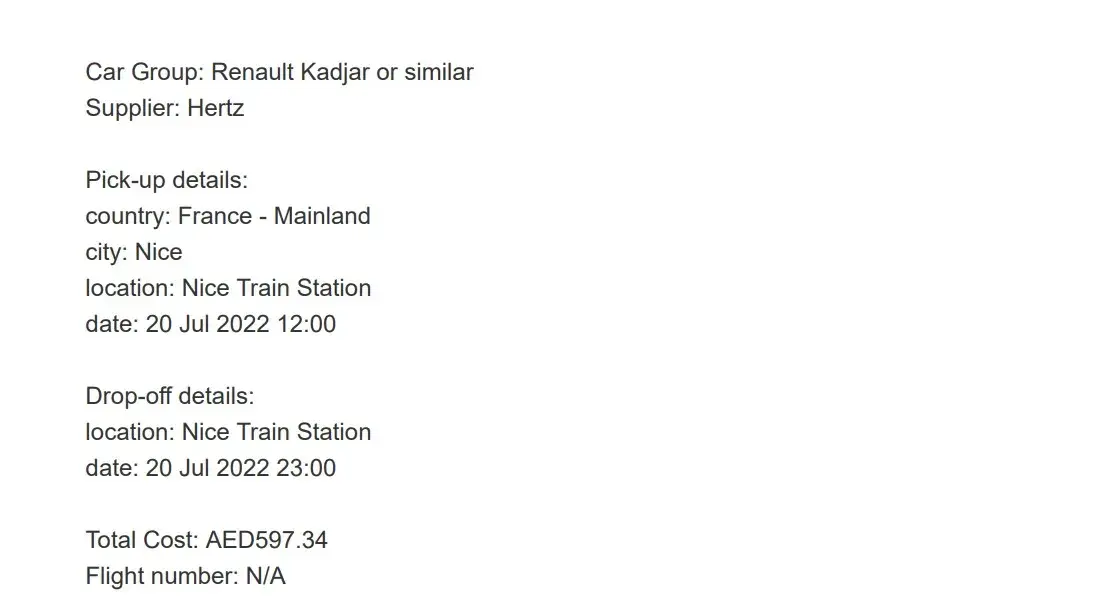 I booked to hire a car from Hertz collecting at Nantes Airport. Collecting on 27.08.22