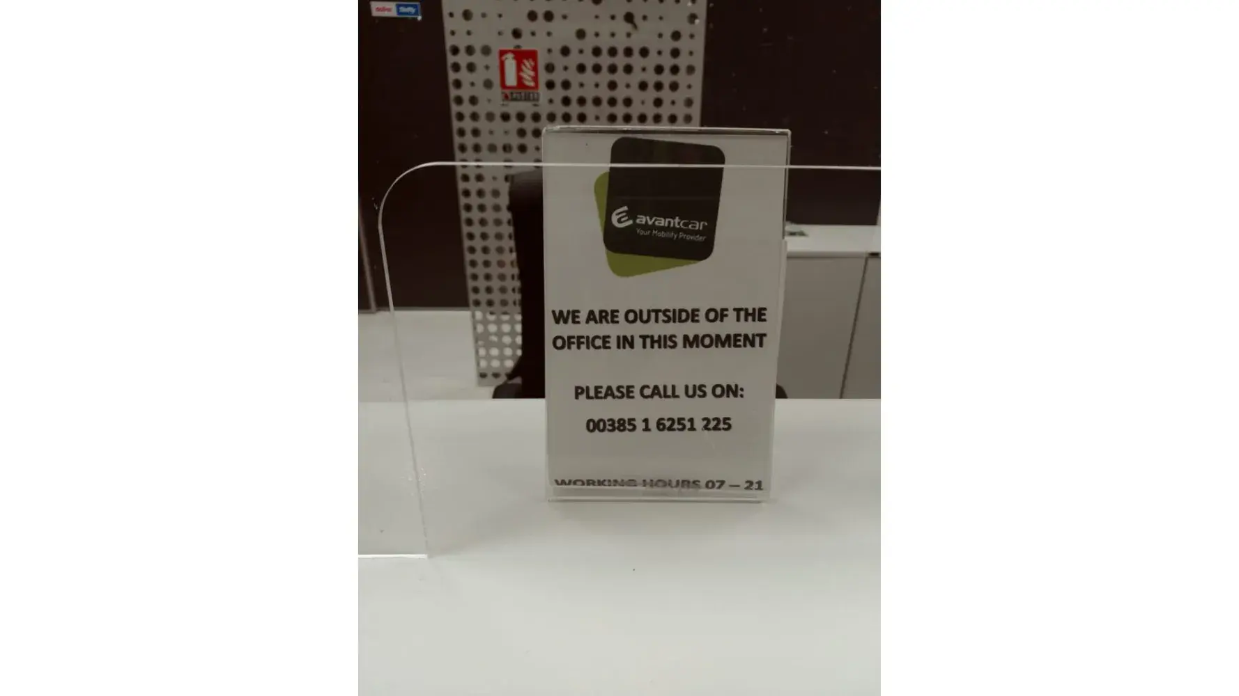 When we arrived to pick up the car at 23:00, it turned out to our displeasure that the representative of the rental company was not found, he finished his work at 21:00. And there is no one to help us and we are stuck at the airport with no answer. (Attached is a picture of the message that appears on his counter).