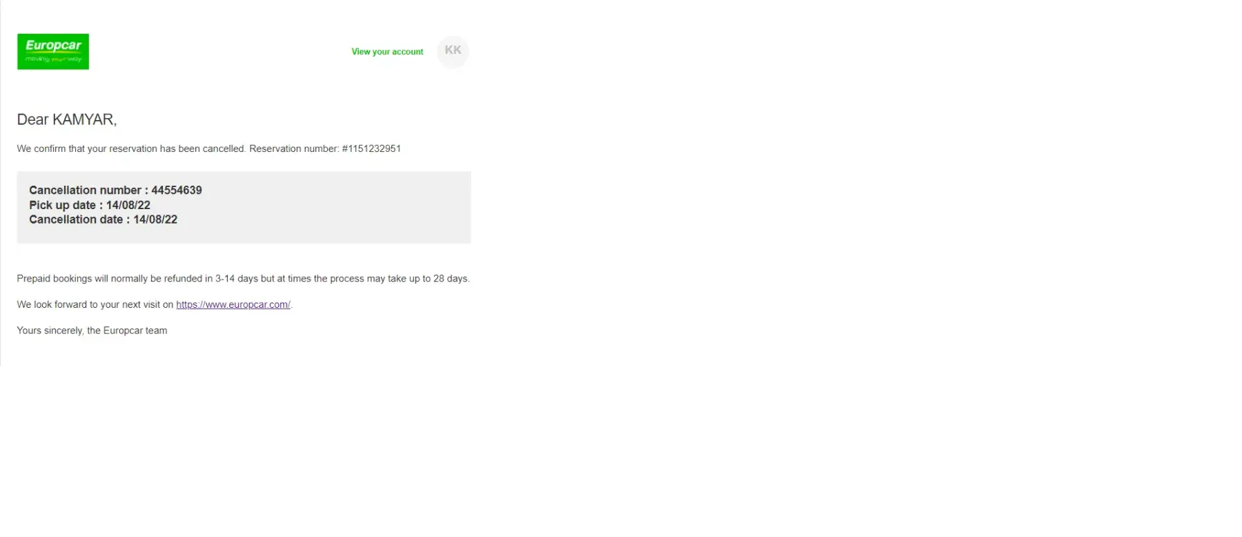 This reservation got canceled by europecar.