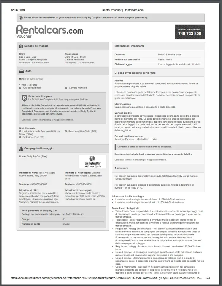 RentalCars.com credit card issue and staff issue at the local agency avantcar in split