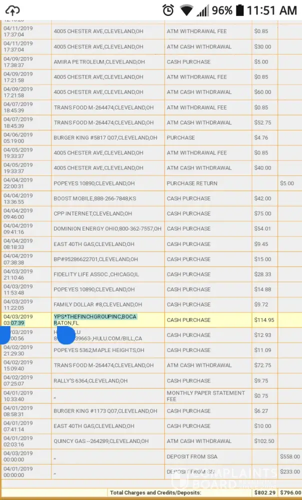 Receipt of money taken out of my account. But my rent wasnt paid. March and April of 2019. I would like my money refunded back to my card for these months.