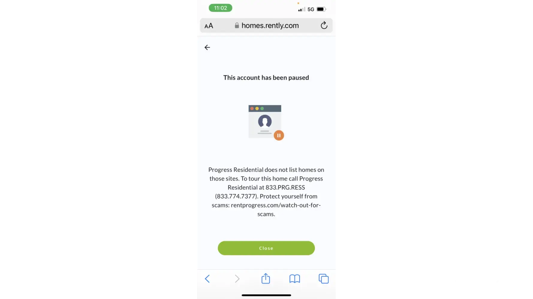 Your account activity triggered our automated security. As a result, your account has been paused. If you believe this was an error, use the Get Help button below for immediate assistance during showing hours. This is the message that both myself and husband are getting. When we reached out as instructed all your company could do is refund our money and tell us some internal server security flag and contact companies directly. All the Realty company tell us is we have to tour through Rently it is nothing they can do.
