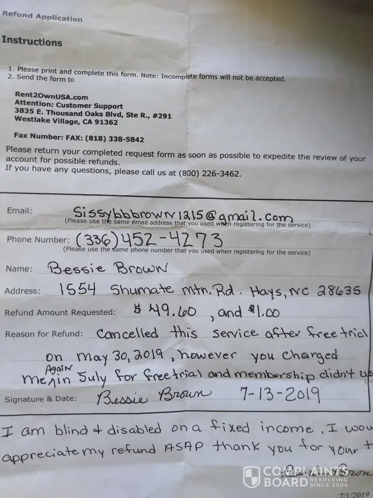 RentToOwn.org RentToOwn.org Review: Frustrating and Disappointing Experience with Poor Customer Service and Hidden Fees