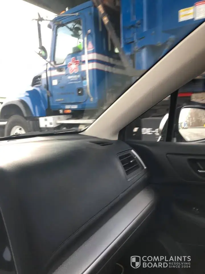 I was behind one of your trucks in Delaware on I95 yesterday morning. This truck was spewing rubbish all over the highway. I took pictures of the truck hoping that somehow I could identify it. However it is not easily recognizable since I could not find a license plate. So I tried to take a few pictures so that you could identify it. Also, you should be required to send someone to pick it up.