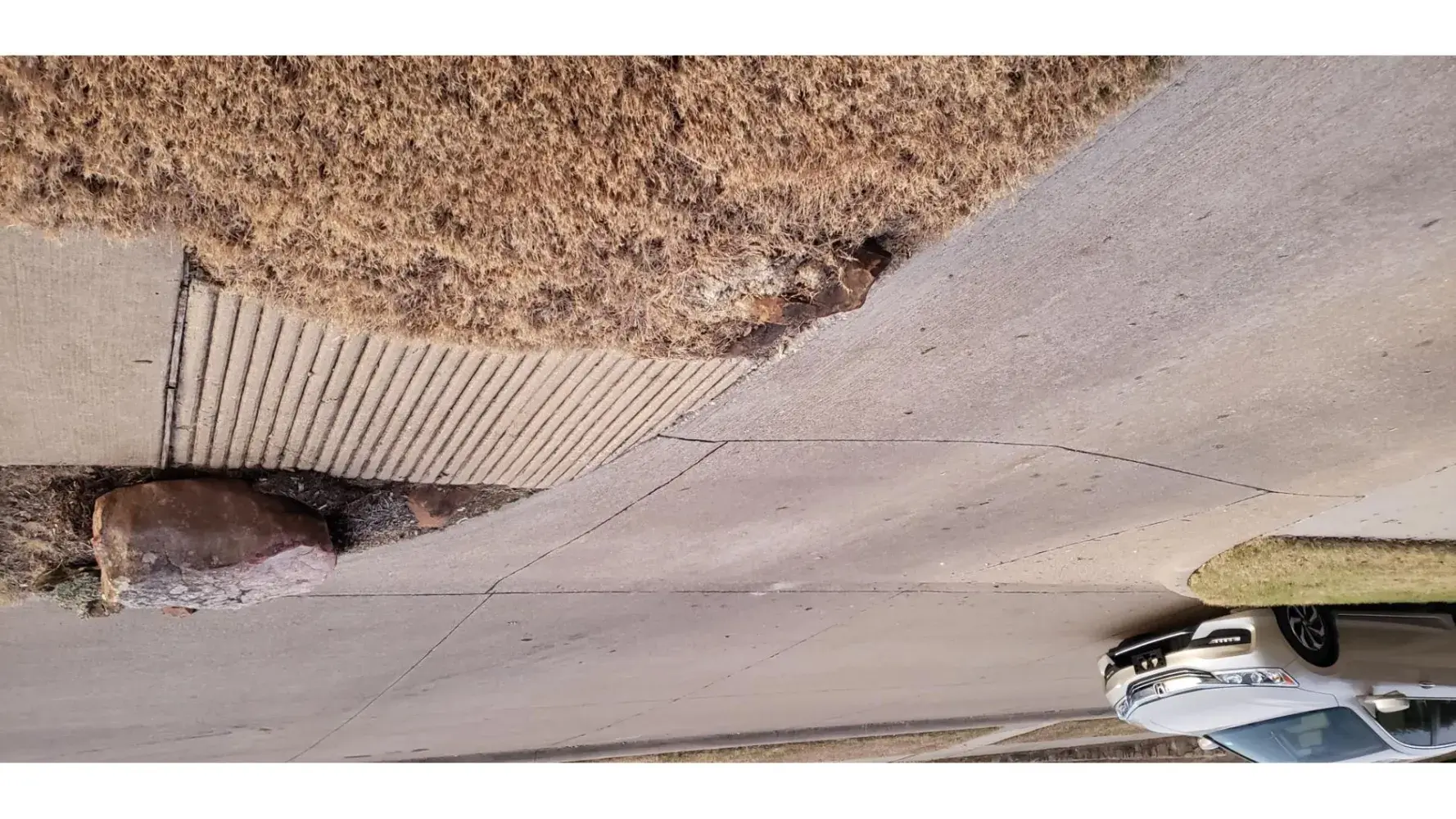 As you can see from the photos, the landscaping rock has been relocated by your trucks to the point where it is almost on the sidewalk. As you can also see from the photos, there is more than enough room for the drivers to make the turn without running over my, and my neighbors, lawns. Additionally, the speed at which they approach the turn is alarming. One day, a catastrophic event is going to take place, and someone is going to get hurt. Please help.