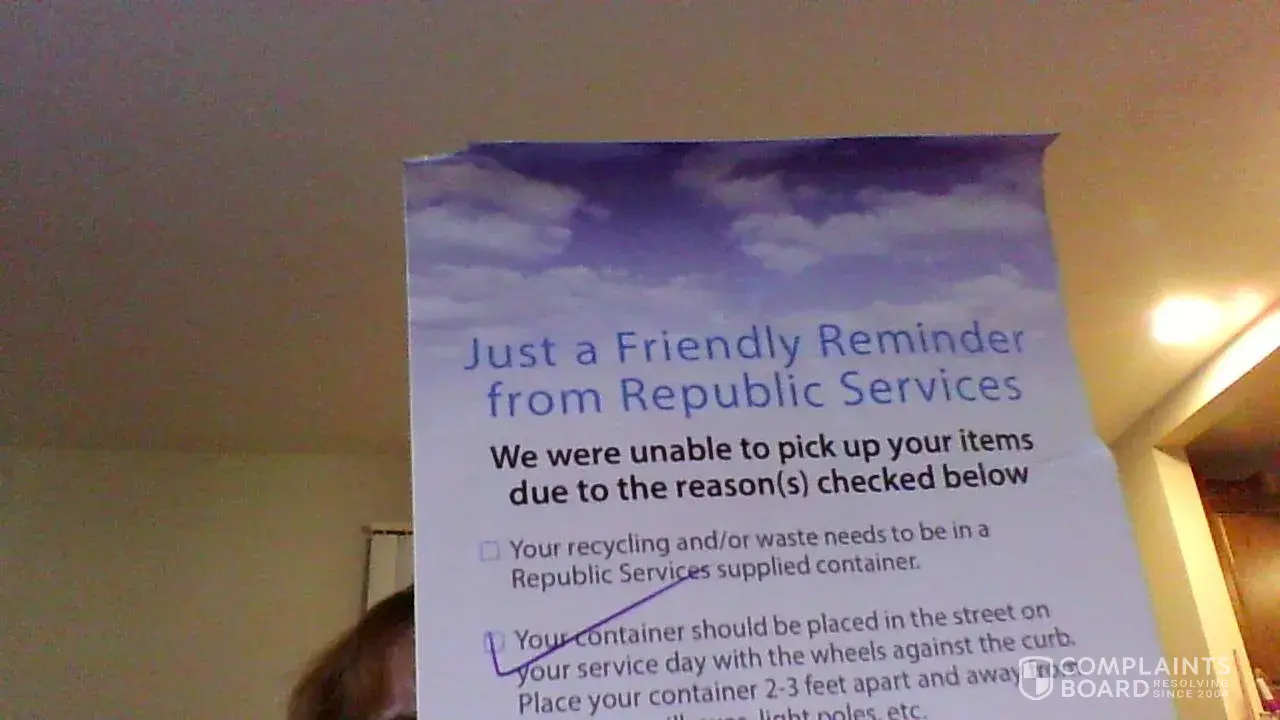 Failure of republic services to respond to missed pickup complaint