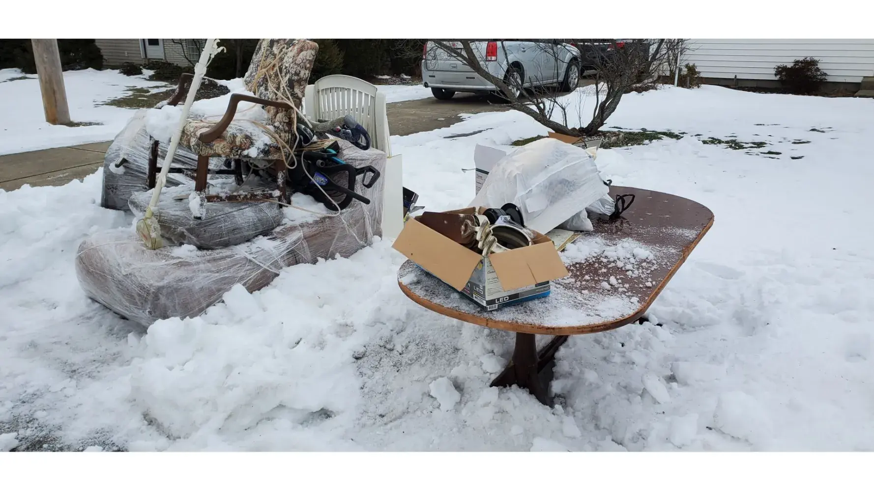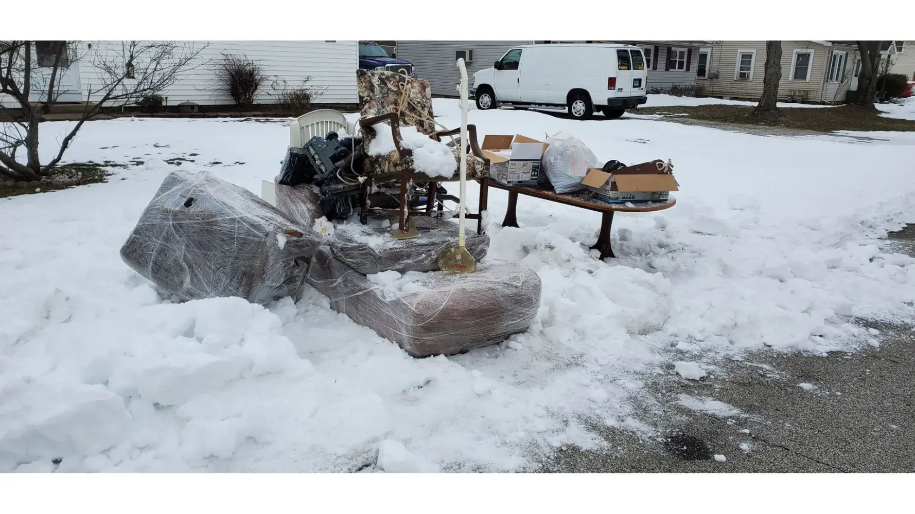 Before we started cleaning house, wife called Republic to make sure they would take furniture and large items. Trash was put out for January 11th pickup. Nothing was taken. January 18th. Still there. Wife called Republic. Was told it would be picked up on a "special "run. January 25th still there. Now buried under a foot and a half of snow. Wife called Republic again. Was told could not pick up. Trash buried in snow. Nevermind the previous two weeks it wasn't. We want to cancel contract with Republic as we are selling house. Republic assured my wife that the trash would be picked up. Not only was it not picked up but the driver walked all the way down the driveway to confiscate the trash cans. Funny how he could get out of the truck for that but tossing trash in the truck was evidently too much. We have dug the snow away from the trash but still no pickup. Now we have a house for sale with a big pile of trash in front of it.