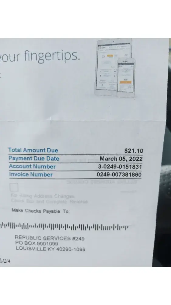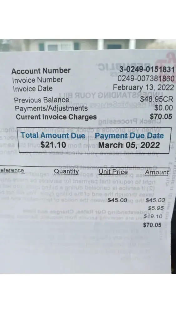 Last year in February 2021 my trash bill came due. I oaid for the entire year. Then in Feb 2022 by bill for the year came due. I called and asked if I could switch it to paying quarterly. The lady said of course and went about taking my payment for the next 3 months and said, ok your next bill will be due in May. Well I just got a bill (mind you its only Feb 24th) for $21.10 due on March 5th? I just called and asked what was going on. The lady said I never paid for January? Im so confused. And honestly feel as though im being ripped off. How do I owe ANY $ just a coue weeks after I just paid up service for the next 3 months? And if I didn't pay for January (which is impossible seeing how I paid for the entire year of 2021 from Feb to Feb) then why when I called to pay my bill a couple weeks ago did the lady not say anything? Im calling the better business bureau. I've NEVER seen a company with nothing but bad reviews. This all seems very suspect to me and how dare they (the employees) act as though im bothering them when I question where my money is.