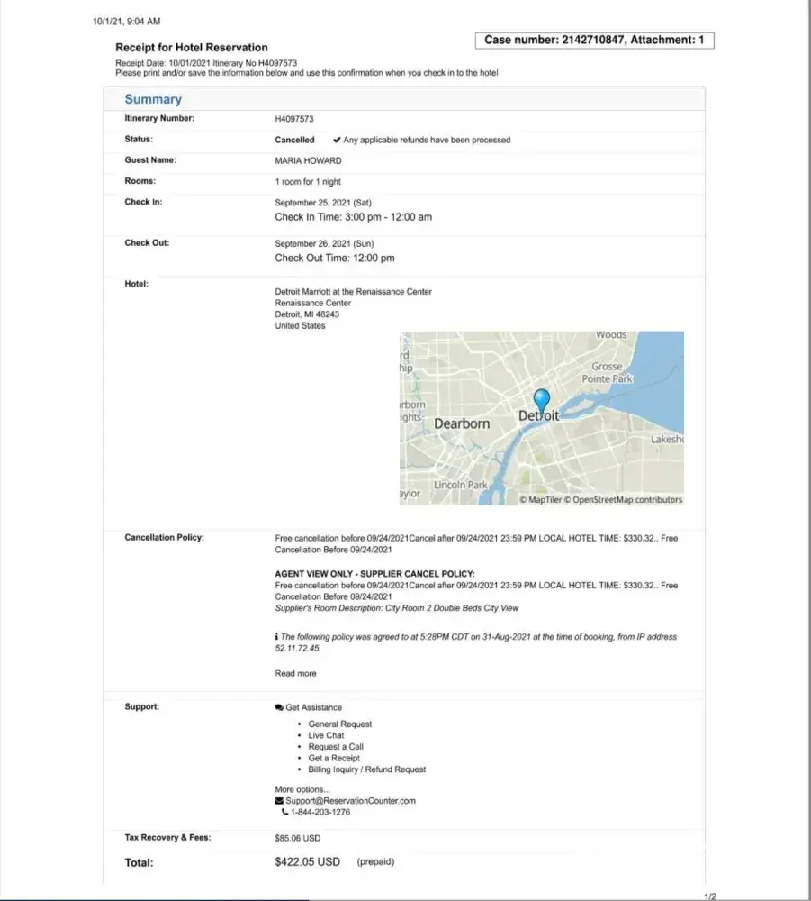I tried to book hotel reservations from this company on Aug. 31, 2021. After talking to an agent she couldn't give me a confirmation number due to system issues and said that the reservations never went through. She told me that she'll call me back for the confirmation number when it goes through but she never did. So, I assumed it didn't went through. All of a sudden I see pending charges on my credit card the next day. I immediately called this company about the charges and assured me that the charges will drop since there was no reservations under my name and since I wasn't given any itinerary number I didn't have any to give them. After almost a week the charges went through my credit card. Interestingly, the charges in my credit card was listed under two different merchants, hotel lodging and expedia. After multiple phone calls reservation counter is still unable to cancel or reverse the charges since I didn't have any reservation in their system even after I explained what happened. After research, I was able to cancel one by calling expedia directly. But I couldn't get any info about hotel lodging. I disputed the remaining charge with my credit card. Then my credit card received a rebuttal letter and receipt from hotel lodging with an itinerary number. In this order receipt it said that I booked it on hotelplanner.com, which I never did. In the receipt summary under cancellation policy is the "agent view-supplier cancel policy" and the time it was made and the IP address used. It is definitely not my IP address. Also, under support is [protected]@reservationcounter.com. I called and emailed reservation counter repeatedly and sent them this the order receipt. They still will not take responsibility fort the booking and will not refund my money saying that I should contact the hotel. The hotel has nothing to do with this. I feel like the order receipt is clear that the booking was between an agent and a supplier. I just want my money back. I didn't even use the reservation since I didn't receive any itinerary number.