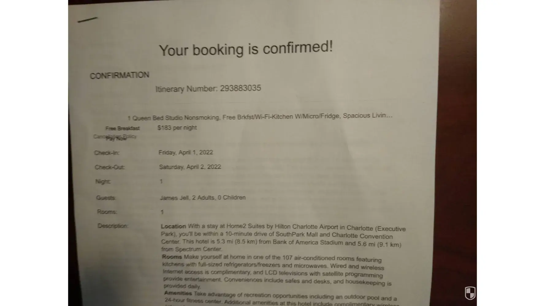 REFRAIN FROM USING THIS 3RD PARTY COMPANY! When you do a hotel search ensure that you are calling the hotel directly and not RESERVATIONCOUNTER.COM because it is better to deal with the hotel directly where no booking fees will be involved. I have been dealing with a dispute since February 2022 for charges of $354.10 in my company credit card that appeared and they cannot give me a justification of what it is for and we are now in April 2022 and have not seen a promised reimbursement appear in my reconciliation report. Be careful when you are looking to book online and this company appears.