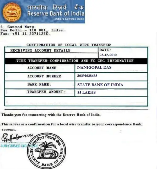 As soon as you contact the reserve bank of india (rbi) with the below details, your awarded funds of eighty five lahks
