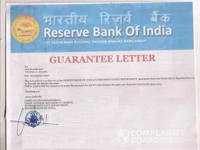 This mail is send RBI he said 880000 paid & then you give a C.O.T code put the code and transfer your money but already i paid a large amount 49000 so please help me...