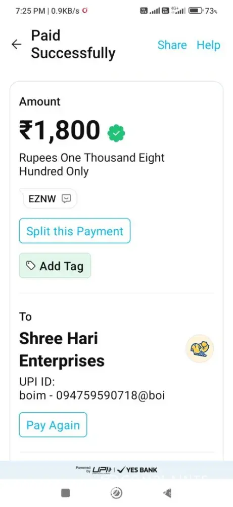 Read full complaintShree Hari Interprises - UPI ID boim [protected]@boi