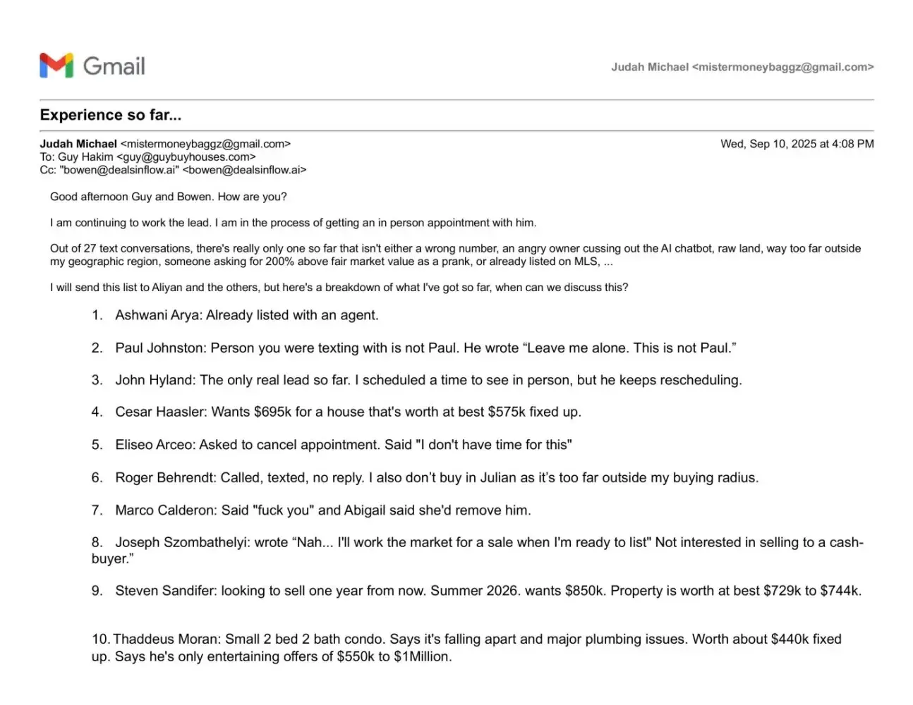 Deals In Flow / Guy Hakim – Paid for Off-Market Leads, Received Wrong Numbers, Non-Owners, MLS Listings, and Prank Responses I am filing this complaint to document my experience with Deals In Flow, associated with Guy Hakim. Based on my direct experience, I believe the service was misrepresented and the leads sold to me were not vetted, not verified, and...