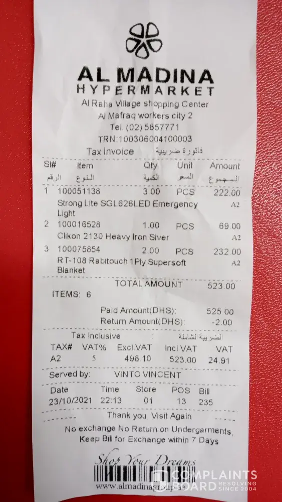 Read full complaintAl Madina Supermarket - Billing time