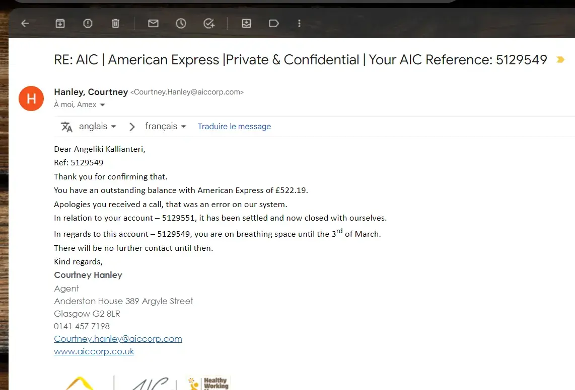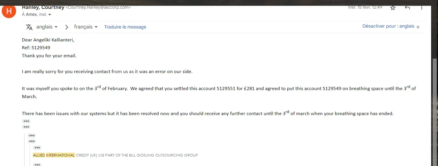 Aparently, that company was given my details by Allied to collect the debt for the account that was placed on hold. All this happened against my will, knowegde and agreement.