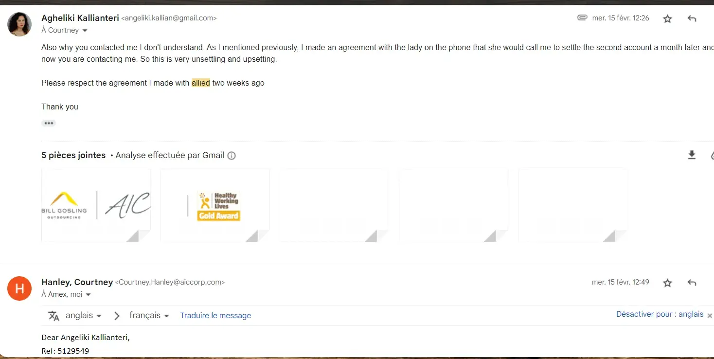 I had 2 American Express cards that have been closed for years. Allied was taking payments every month. End of January 2023 they called me to settle. They agreed on the phone to close both accounts. They took the payment for one of the accounts and agreed to call me in the end of February to take the other amount. This did not happen. Instead I kept receing emails and phonecalls shortly after the 1st payment was made.