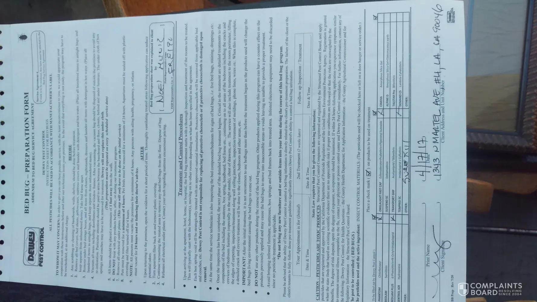 It's official people my apt in building 1343 has recurring bed bugs notified both Bill @Yale Management and slumlord Jonathan dromy/505 investment Co llc, almost a week and they could not get an appointment from Dewey Pest to come out and do a treatment. Bed bugs are disgusting, GROSS! Bed bugs Slumlord! I even told them to go with another Pest Control Company but NO. They don't care if tenants get bitten or the disabled tenants & pets get sicker! 1 page is from Bill Mgr notice to enter, the other page is from Dewey inspector but no appointment date!