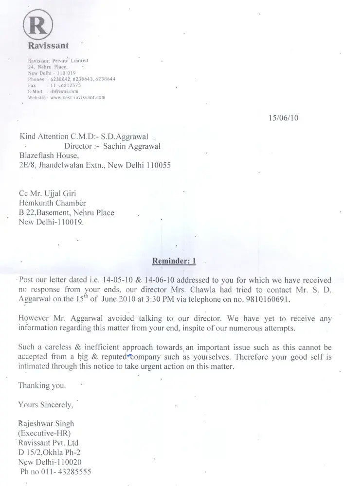 We are filing FIR for conspiracy of stealing our goods as no substantial reason is given by Blazeflash and no compensation is offered till 27/07/2010.