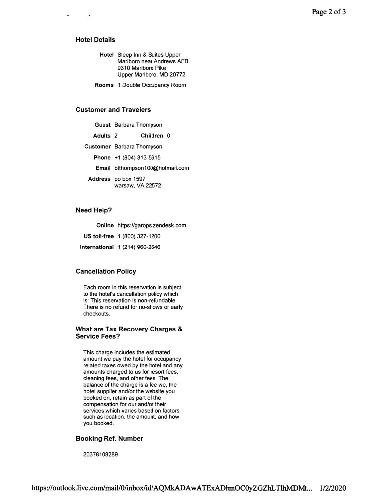 Desired outcome: Return the Fees charged ($1838.48) and the unauthorized additional night ($552.75)