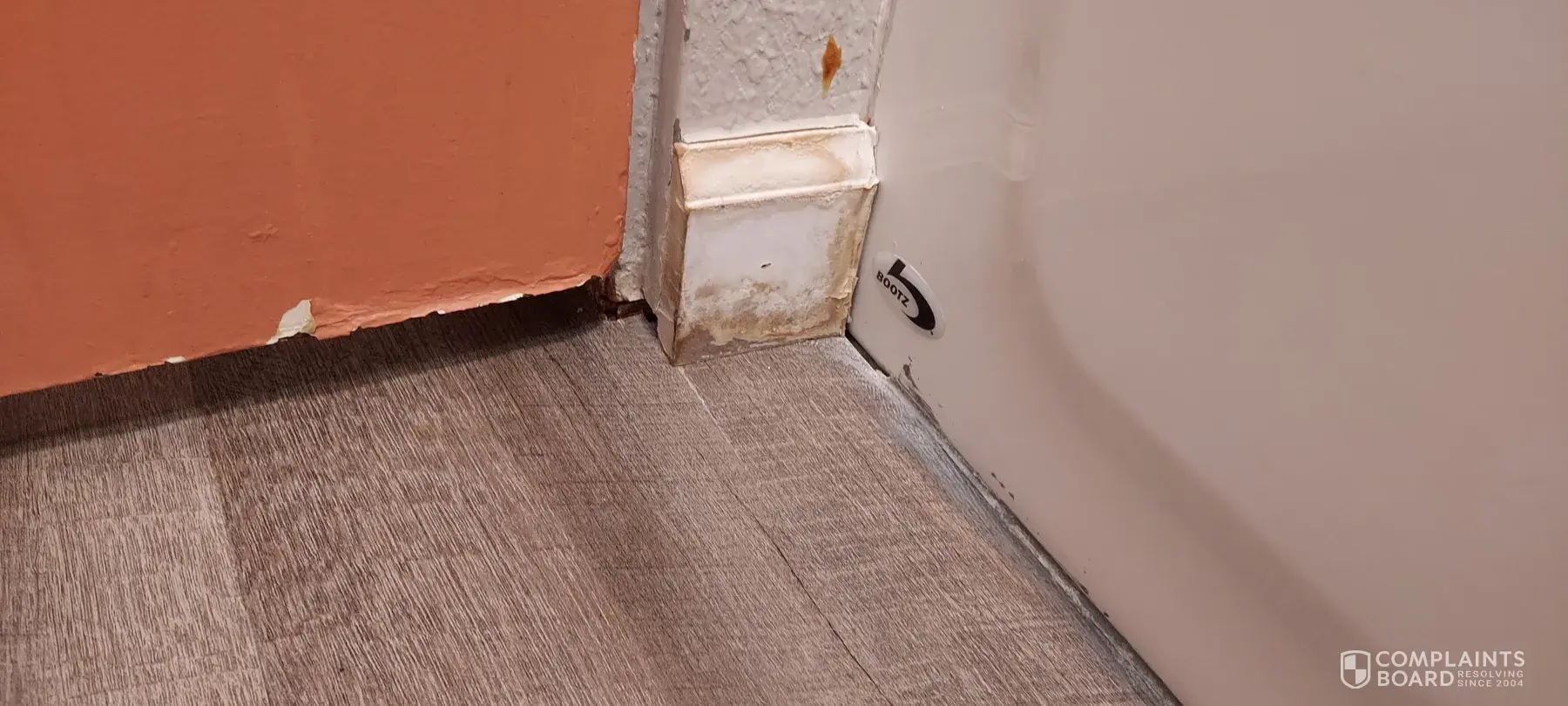 The room smelled like mildew. The floor was warped. There were flies flying all over the room. There was a hole in the middle of the floor with a loose metal cover, which came off the hole when it was brushed when walking over it. The bathroom had mold on the ceiling, and there was brown stuff in the tub. Paint was peeling off the ceiling.