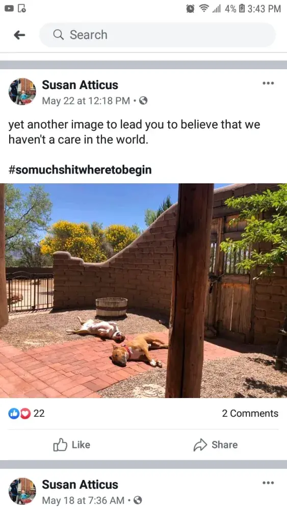 Here's the post I forgot to upload of Susan blasting her neighbors on social media. The funny thing is she rents. This is just another example to show people shes in everyone's business. Records show shes only been living here since the beginning of the new year 2019. Not even 6 months after renting this place she's telling neighbors how to live their life. This is funny because knowing she rents she continues to own bull terriers. If I would of known what I know now scott wouldn't own one of my dogs.