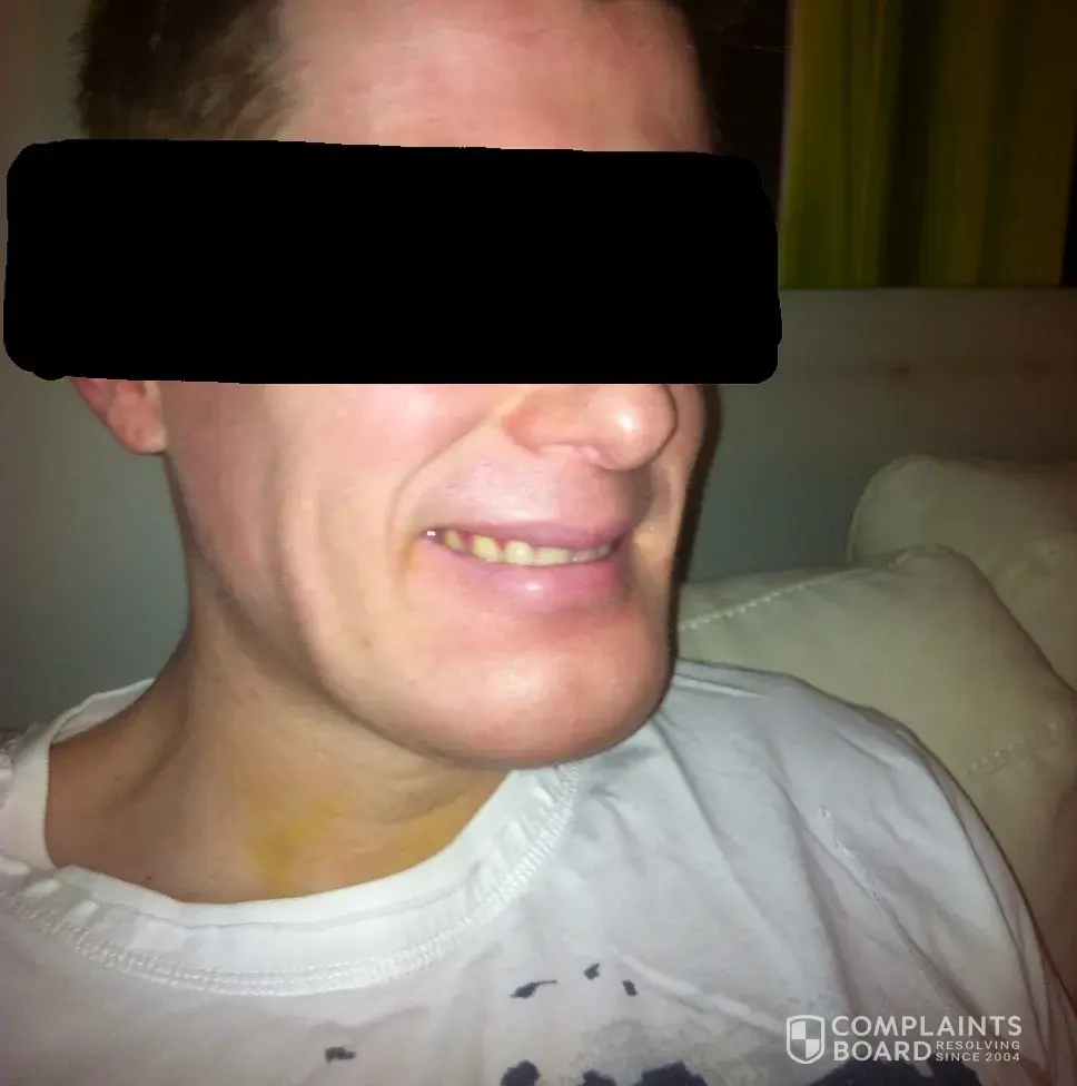 Dr Ross affixed a chin implant entirely on top of my chin rather than around it (according to the hospital report written by the independent removing surgeon), and it was attached to my face 1.5cm off centre (again, according to the hospital report). This resulted in: