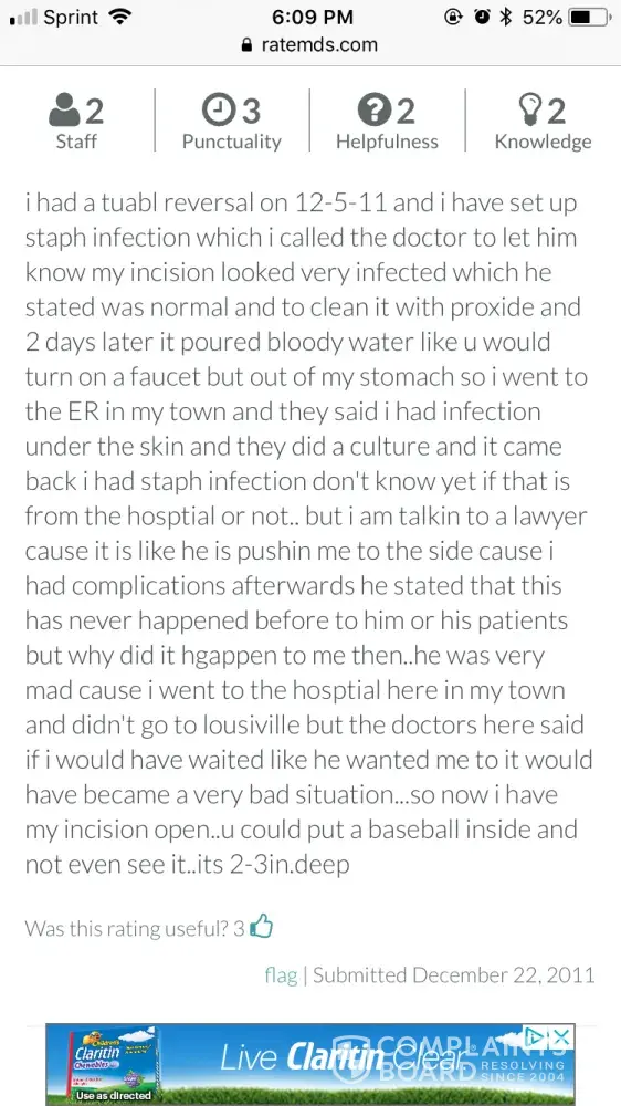 I am not sure how ppl can say that others experiences are lies or false. I just had my reversal done last month, I would not recommend Dr. Levin to anyone. He was very rude, I read previous reviews about his bed side manner and ignored it. Prior to surgery he told me I wld Be good with a bikini incision and then changed it the day of, to a mid line cut and stated that I can either take it or go home and cancel everything. I asked him long before I cld drive, only bc my husband and I Cldnt recall what the paper said and were debating, Dr Levin rudely responded that he can already tell that I’m going to be a horrible patient and this is going to be a bad case! I might as well call the surgery off. That was easy to say once after we had already paid, and paid for flights and took leaves from work so we proceeded. I had several questions after the surgery because the wound has become infected. I sent 9 emails from my gmail, but for some reason one of his responses he sent to another email that I contacted his office on months ago, so I let him know that I didn’t receive his last response, his response was...I’m never emailing you again. I’m upset all over again by the way This man has treated me. I’m starting to think he may be experiencing a decline in mental health, he is a lot older than the pic he has on his website. I wish that I wld have listened to the other reviews! I have attached pics and also other reviews, and after reading these comments and more. He did a horrible job with my incision he was over booked the day of. I have posted pics of the email, and others reviews. I can also post pics of the incision the day of surgery.