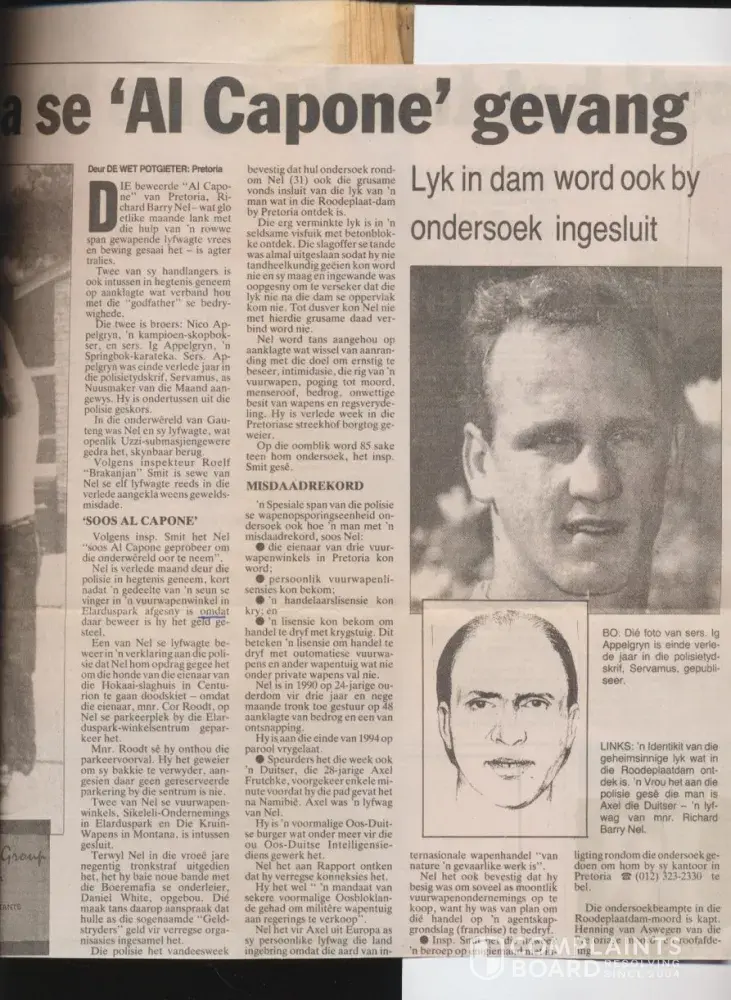 Die beweerde “Al Capone” van Pretoria, Richard Barry Nel – wat glo etlike maande lank met die hulp van ‘n rowwe span gewapende lyfwagte vrees en bewing gesaai het – is agter tralies.
