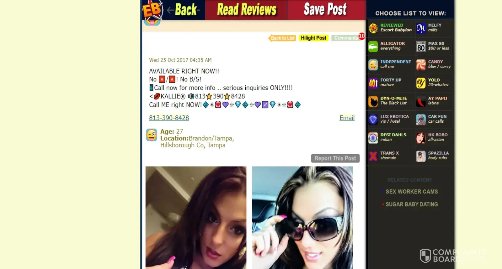 Escortbabylon.com reviews and complaints