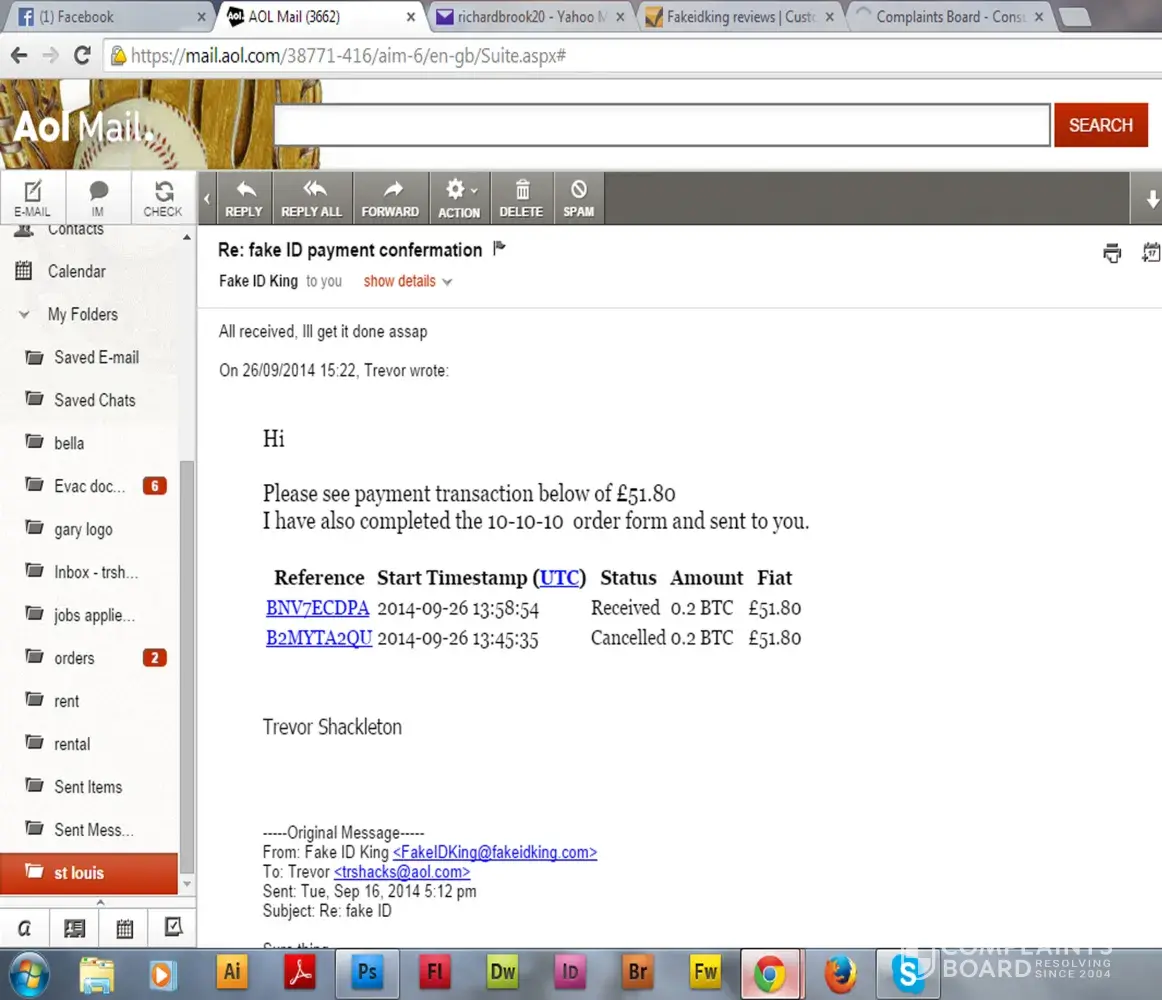 On the 26th September I paid £ 51.80 via bitcoins to FakeIDking.com, I got an email stating that money was received and that they will get it to me asap.