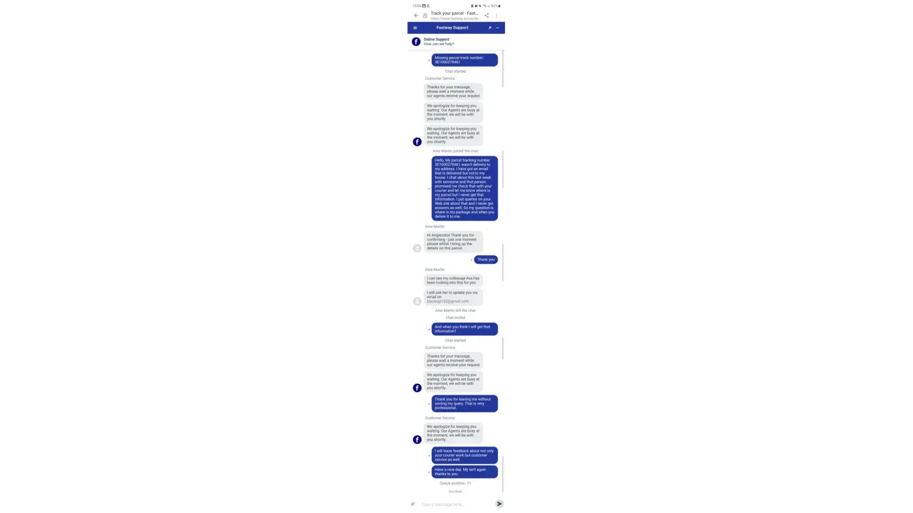 Fastway Couriers reviews and complaints